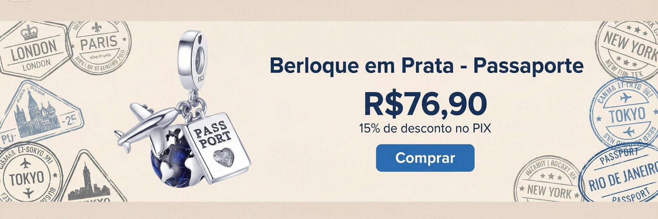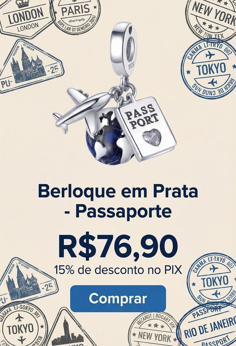 Berloque em Prata - Charm My Life - Passaporte