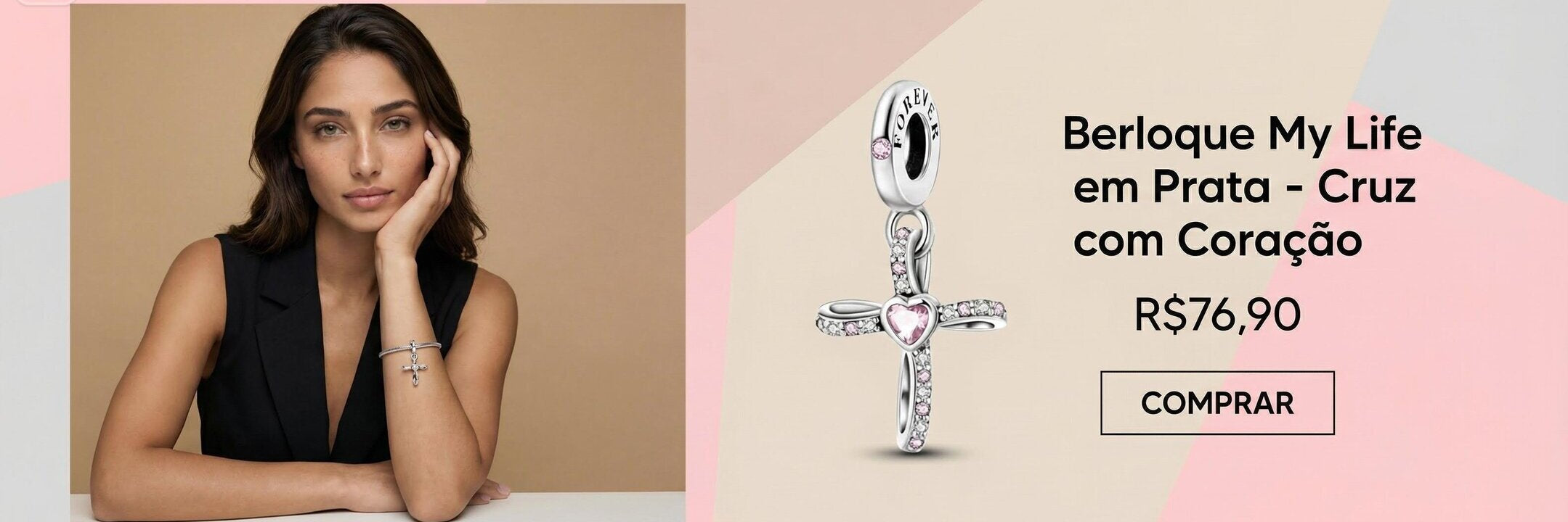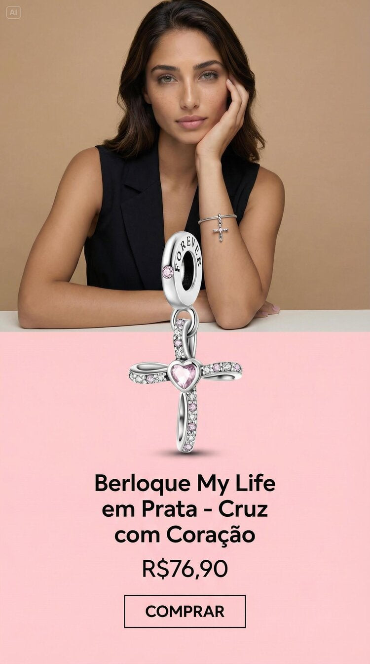 Berloque em Prata 925 - Coração com Cruz