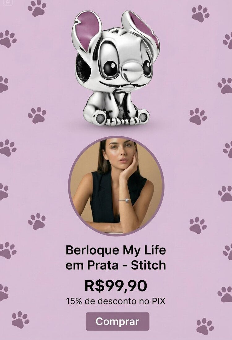 Berloque My Life em Prata 925 - Stitch