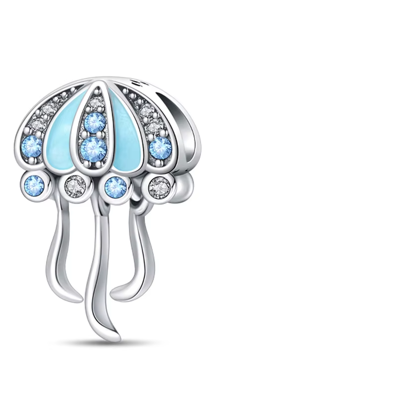 Mergulhe no encanto das profundezas com o Berloque Água-Viva em Prata 925. Elegante e cheio de movimento, ele representa fluidez, leveza e conexão com o mar. Um charme perfeito para quem ama o oceano e deseja um toque mágico na pulseira.