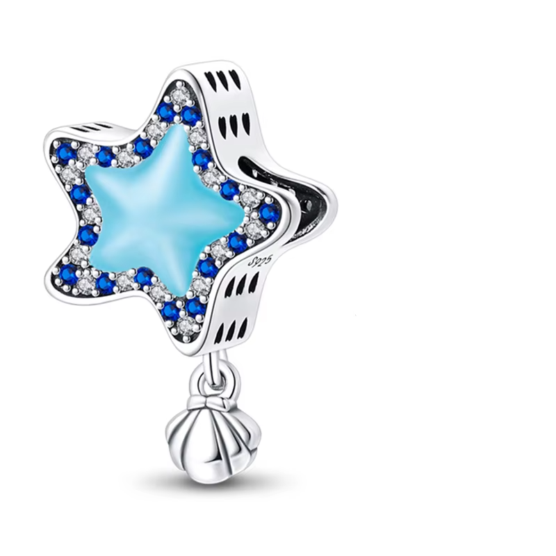 O Berloque em Prata 925 – Estrela e Concha com Pedras traz o encanto do mar em cada detalhe, com um toque especial: ele brilha no escuro, iluminando suas lembranças mesmo quando a luz se apaga. A concha simboliza proteção e mistério, enquanto a estrela representa sonhos e caminhos que guiam sua jornada.