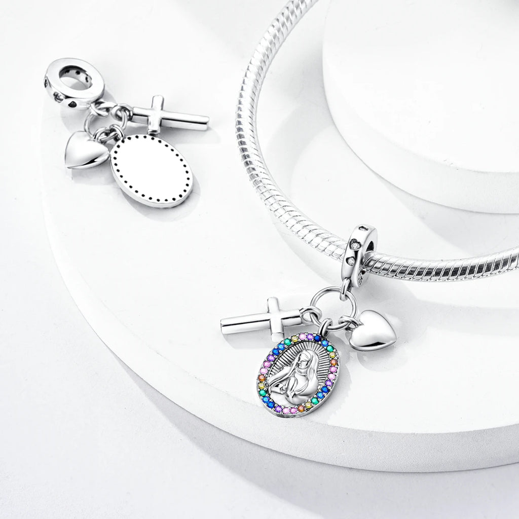 Carregue a bênção e a proteção da Nossa Senhora sempre com você. Este berloque em prata 925 representa fé, esperança e amor, trazendo um toque de espiritualidade e conforto para sua pulseira. Uma peça delicada que conecta você às suas crenças com elegância. Frete grátis para todo o Brasil!