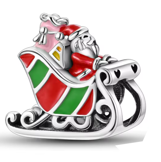 O Berloque em Prata 925 - Papai Noel no Trenó traz todo o encanto e a magia do Natal para sua pulseira. Com um design detalhado e cheio de ternura, ele retrata o Papai Noel em seu trenó, símbolo da generosidade, alegria e espírito natalino que tornam essa época tão especial.