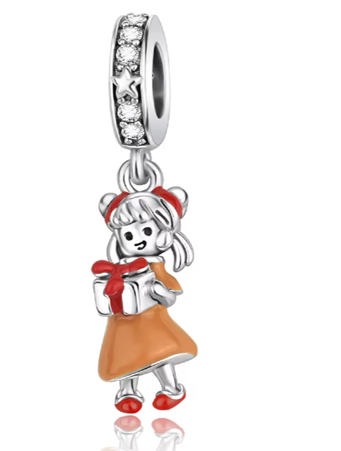 Adicione o Berloque Menina com Presente à sua coleção e leve consigo o encanto e a alegria do Natal o ano todo.