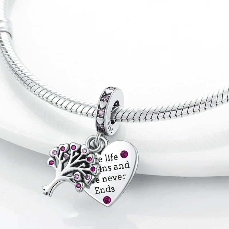 Onde a vida começa, o amor floresce e nunca tem fim. O Berloque The Life Begins and Love Never Ends em Prata 925 é uma homenagem emocionante aos laços eternos que nos formam e nos acompanham pela vida.